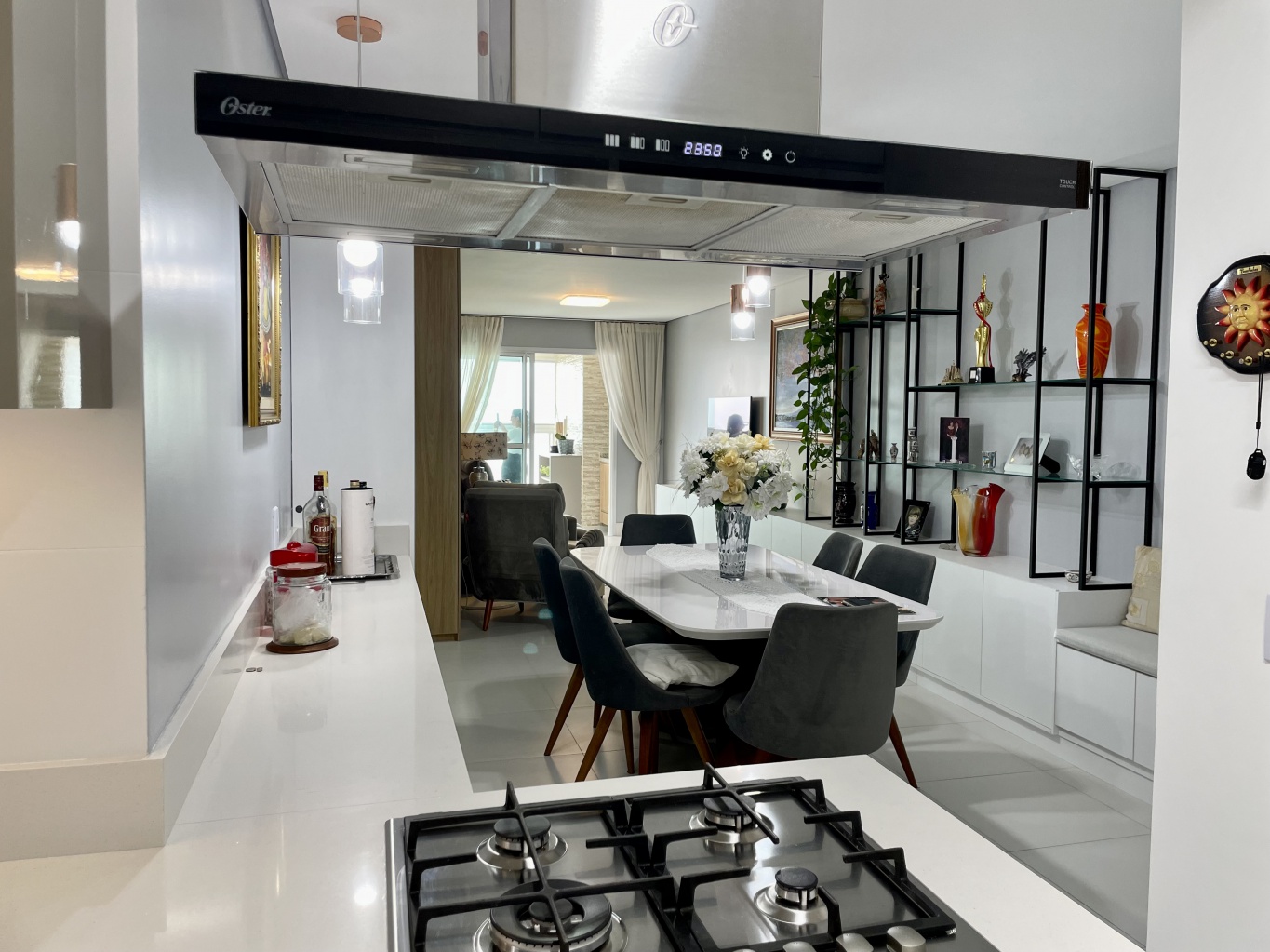 Além disso, você terá à disposição 04 quartos sendo duas suítes, sala de estar, sala de jantar, cozinha, sacada com churrasqueira à carvão, área de serviço e vaga de garagem