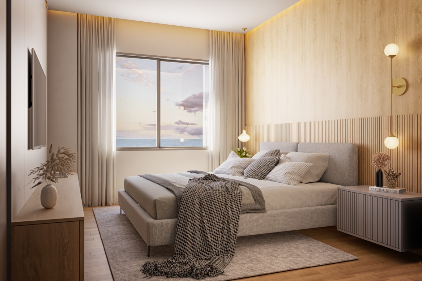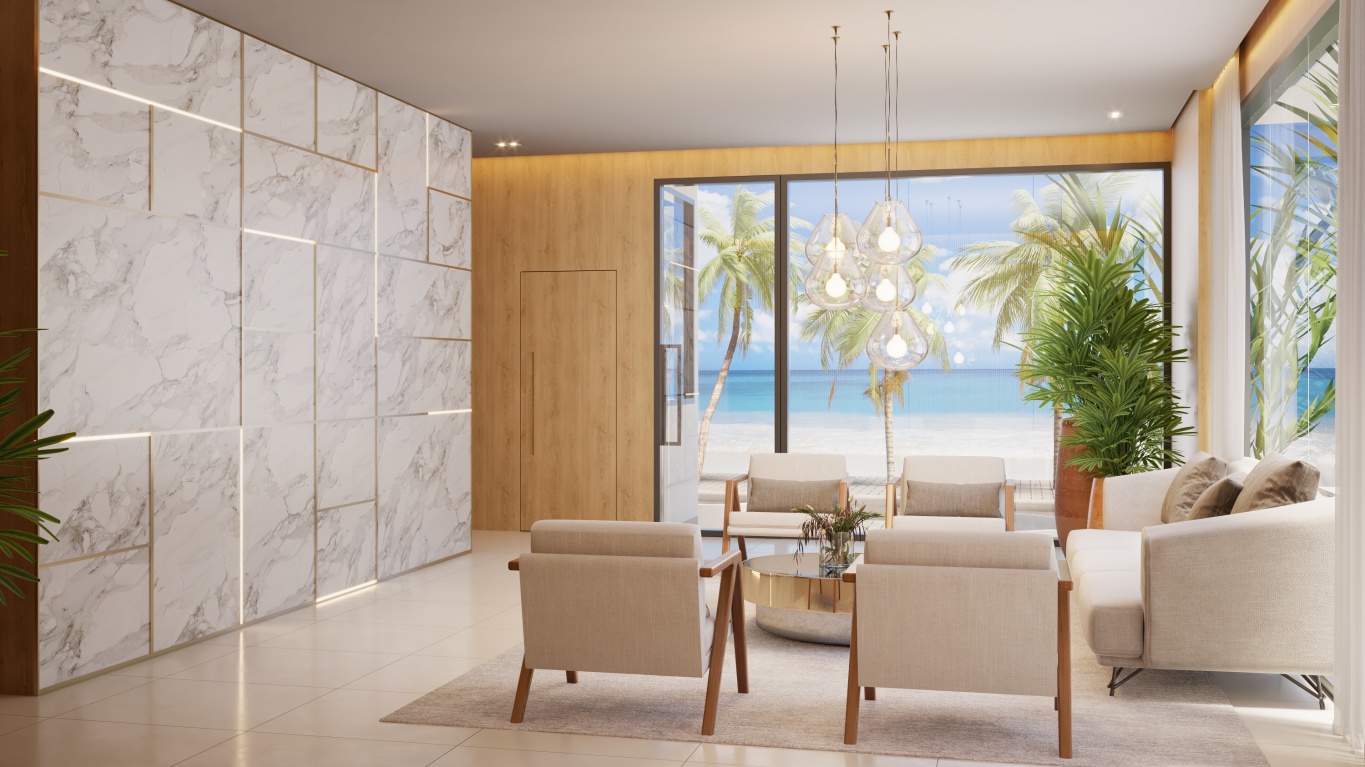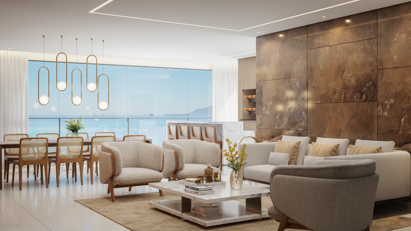 • Amplo living com 03 ambientes e vista mar