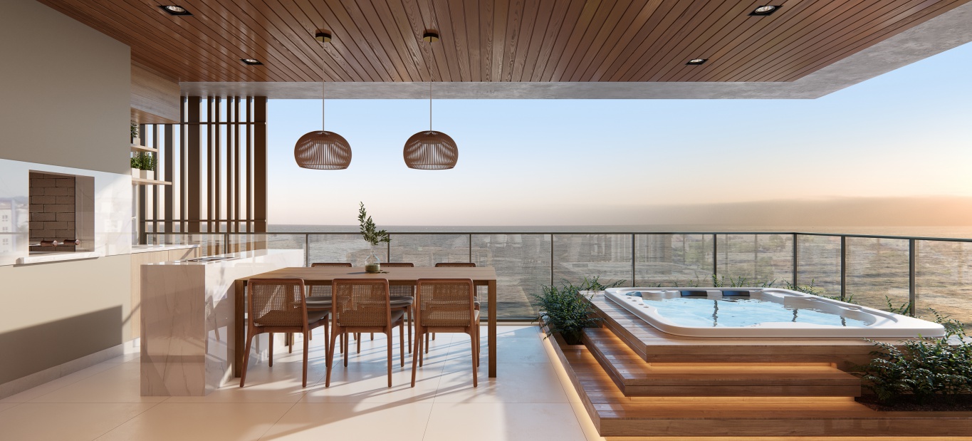 Além disso, você terá à disposição 4 suítes, sendo uma suíte máster com closet e hidro, escritório, sacada de frente para o mar com churrasqueira à carvão e hidro Spa.