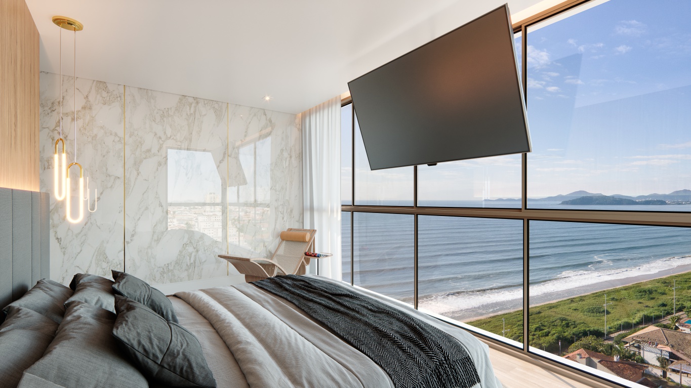 Além disso, você terá à disposição 4 suítes, sendo uma suíte máster com closet e hidro, escritório, sacada de frente para o mar com churrasqueira à carvão e hidro Spa.