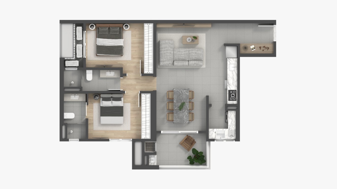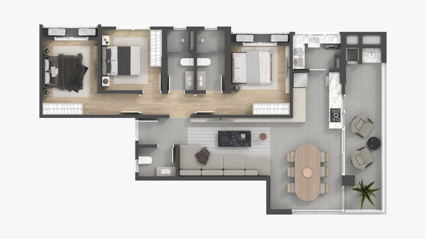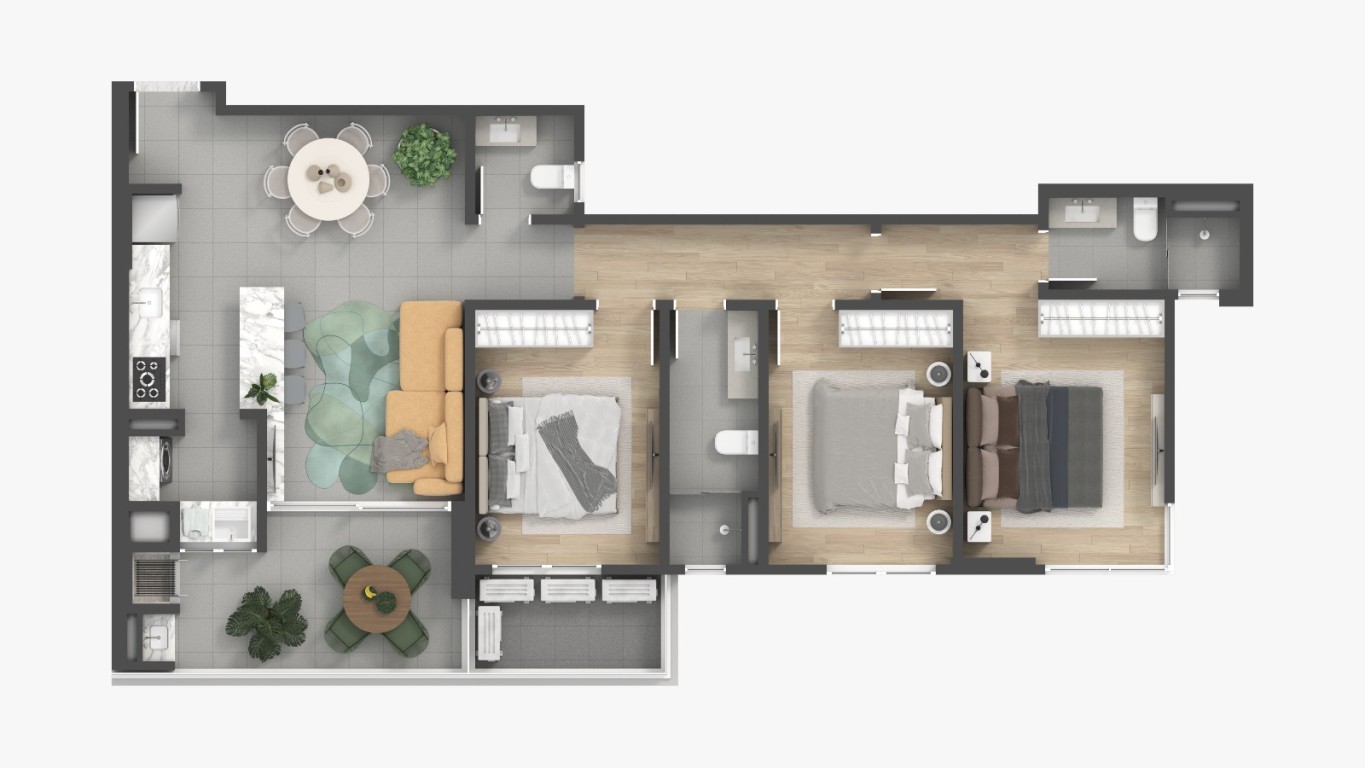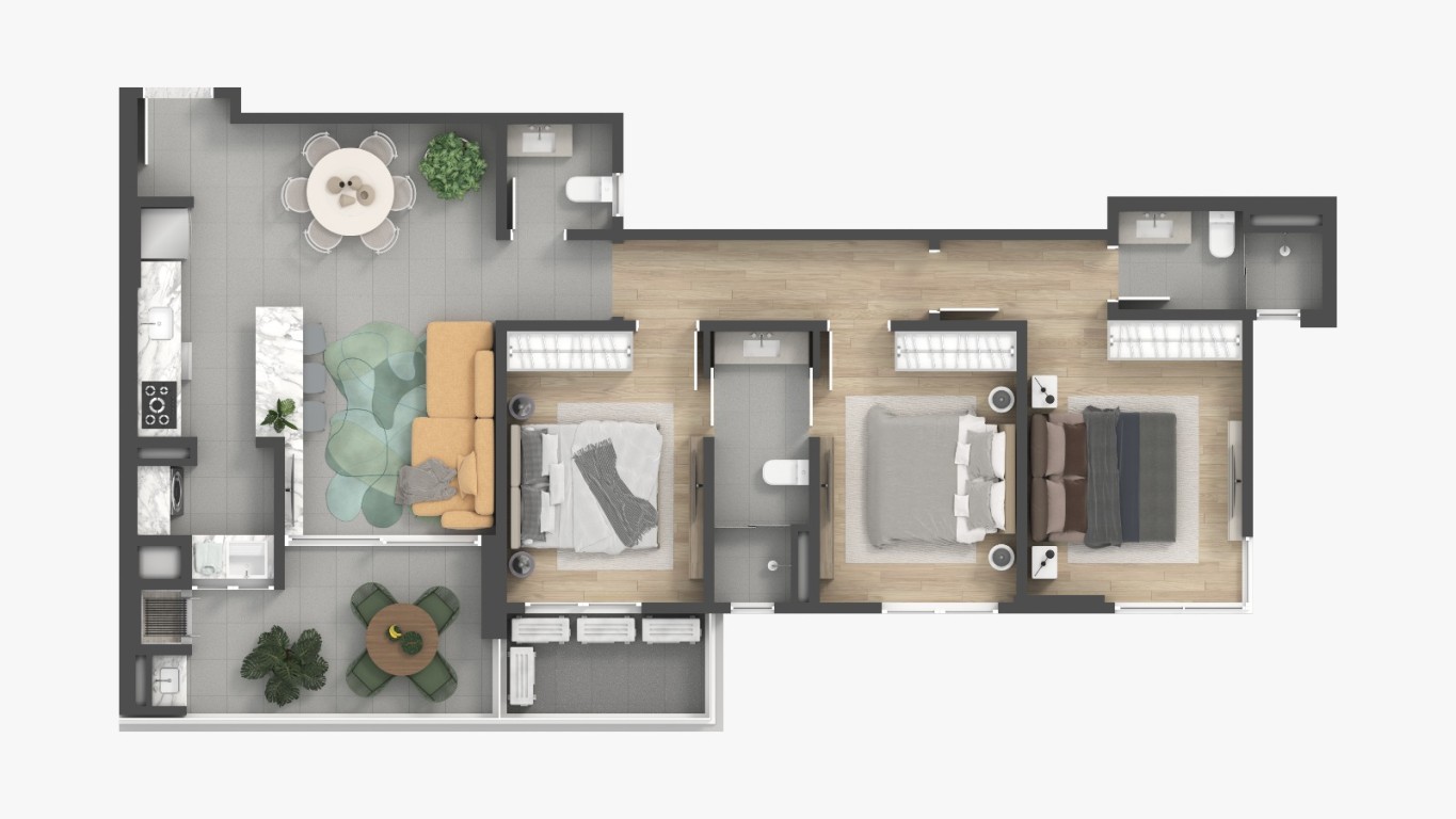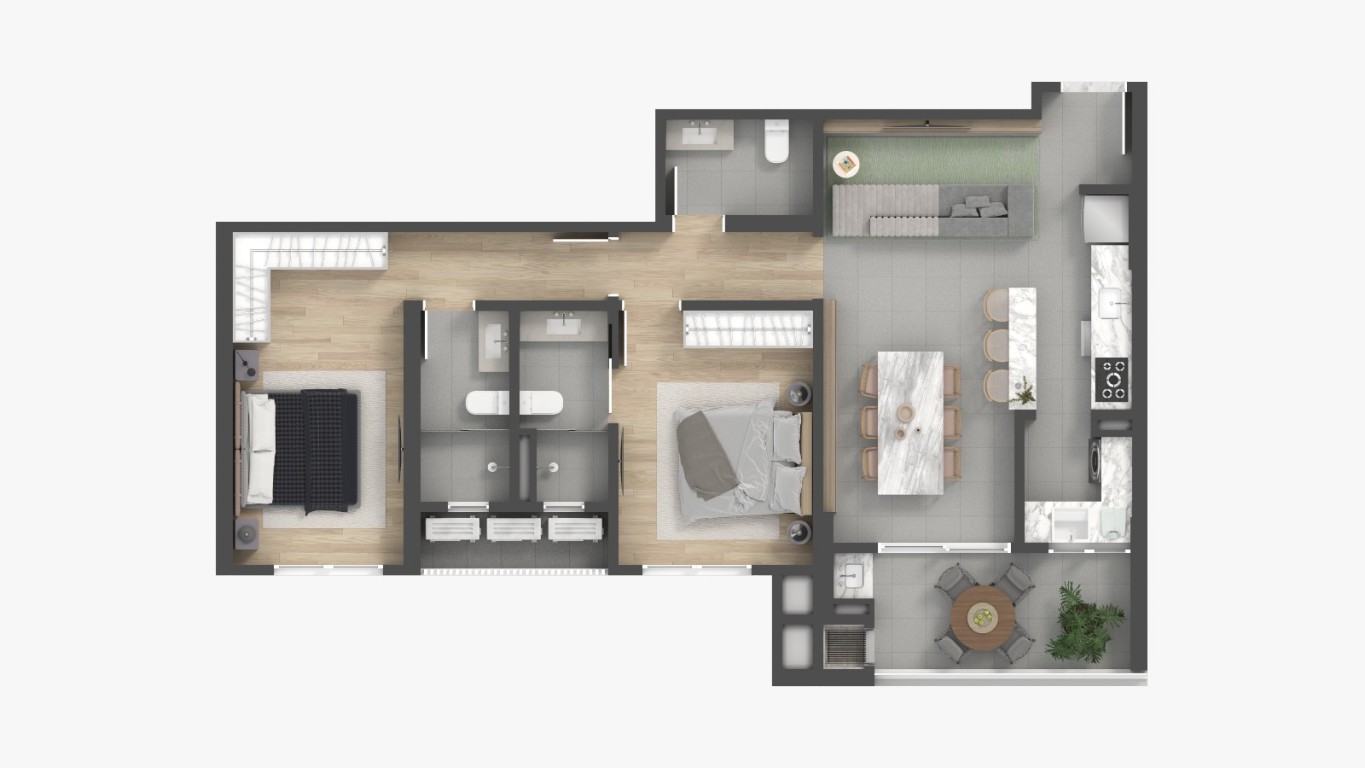• Living integrado;