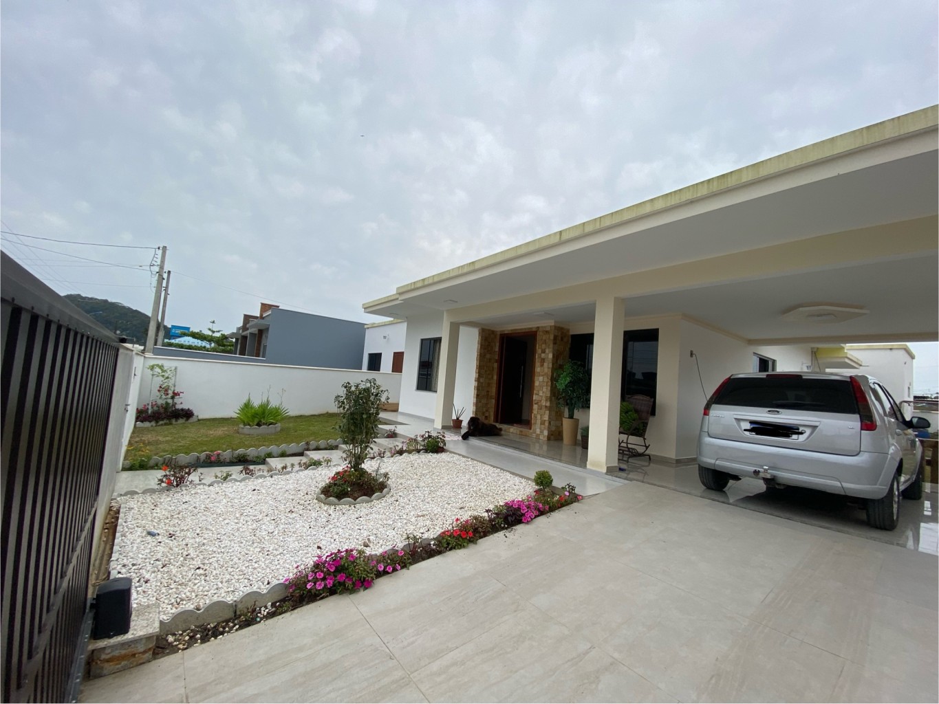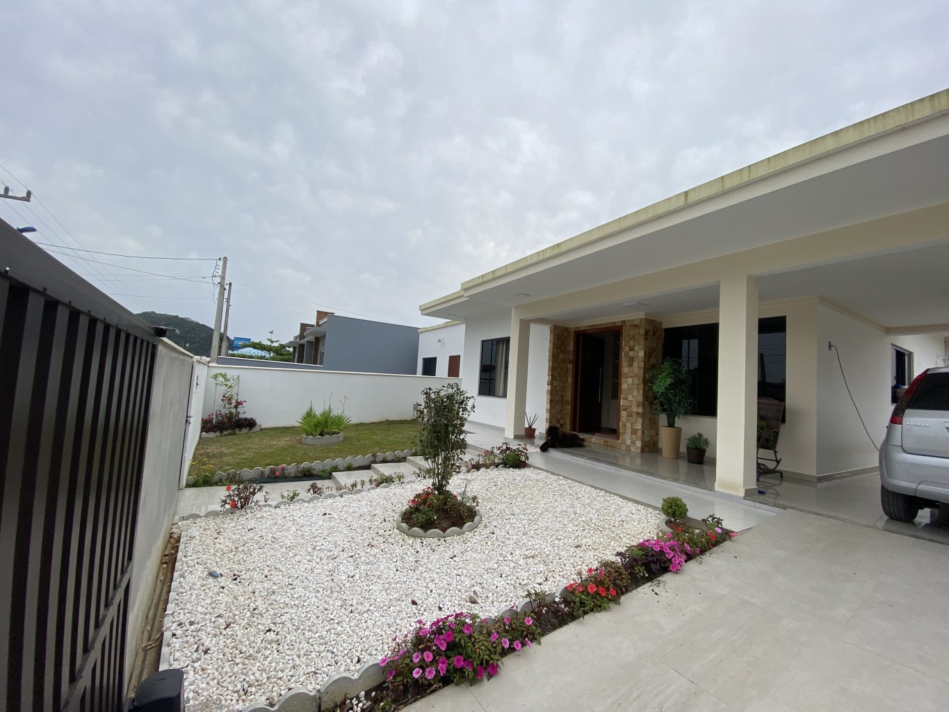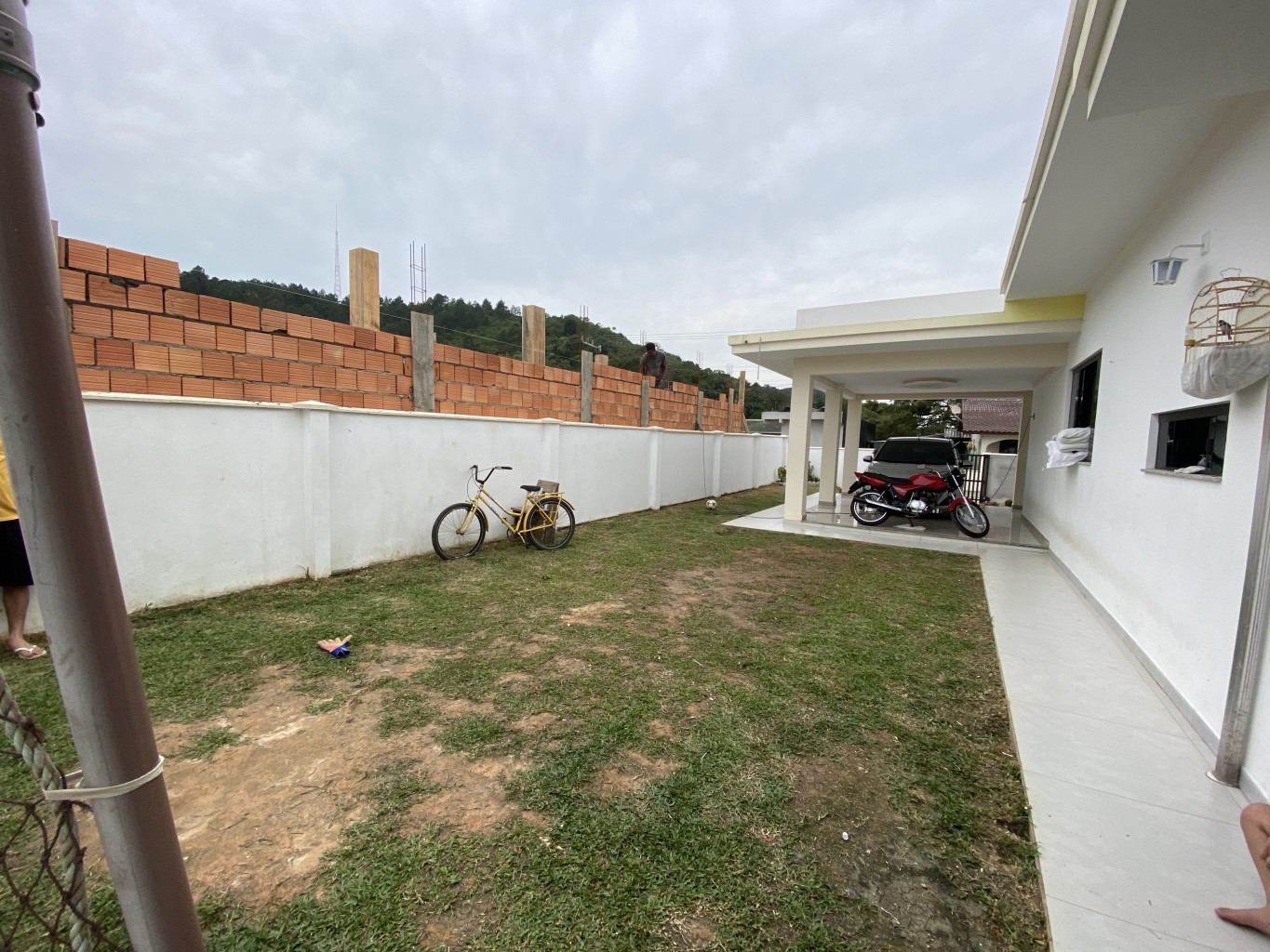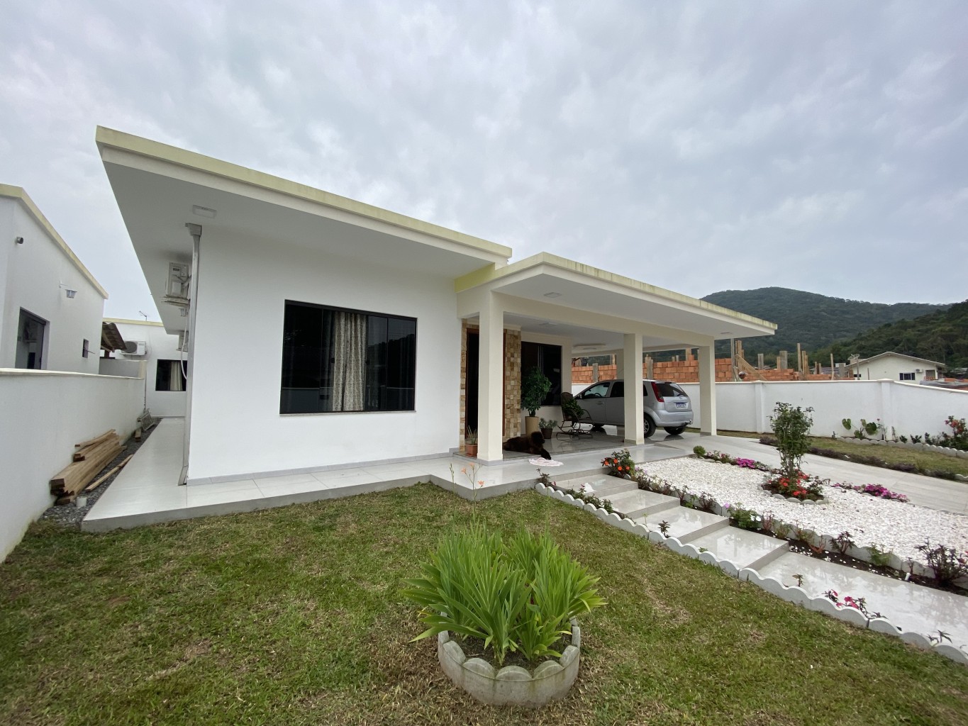 A casa principal conta com sala e cozinha integrada, dois quartos, banheiro social e uma vaga de garagem coberta.