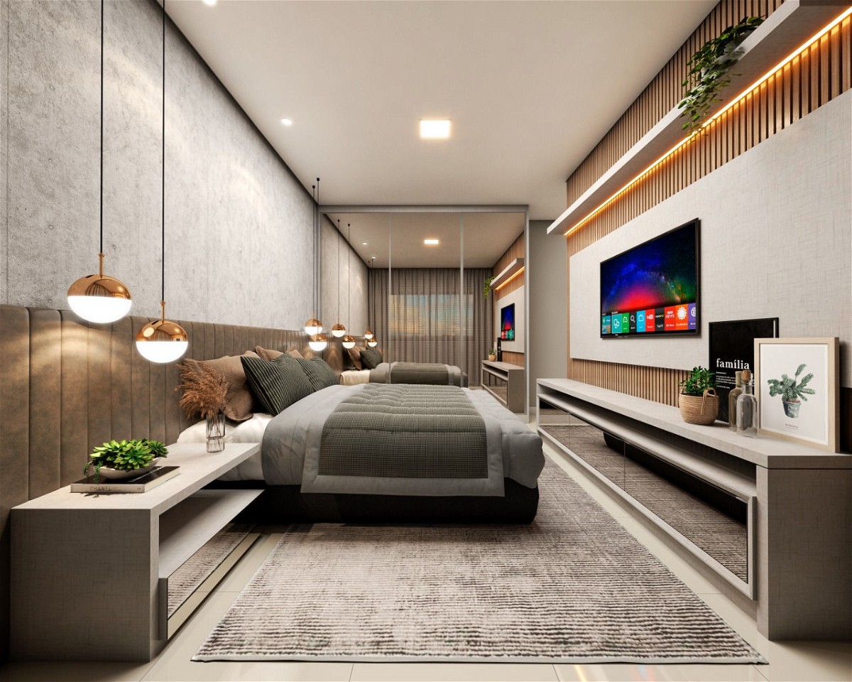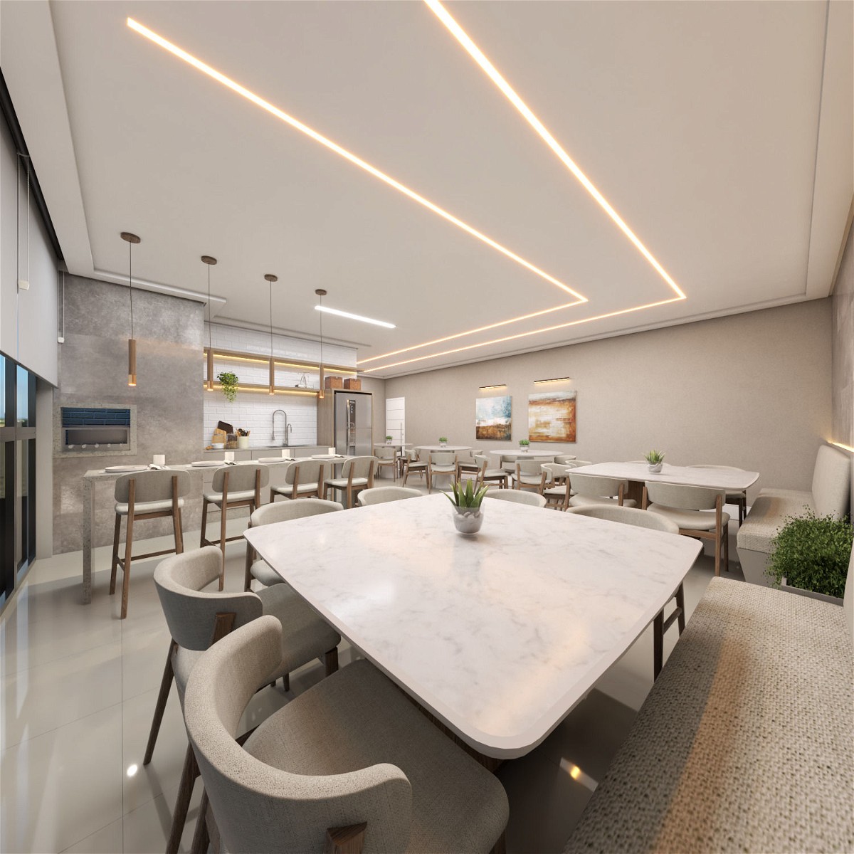 Você terá à disposição 3 quartos sendo 2 suítes, área de serviço, lavabo, sala de estar, cozinha, sala de jantar e sacada com churrasqueira.