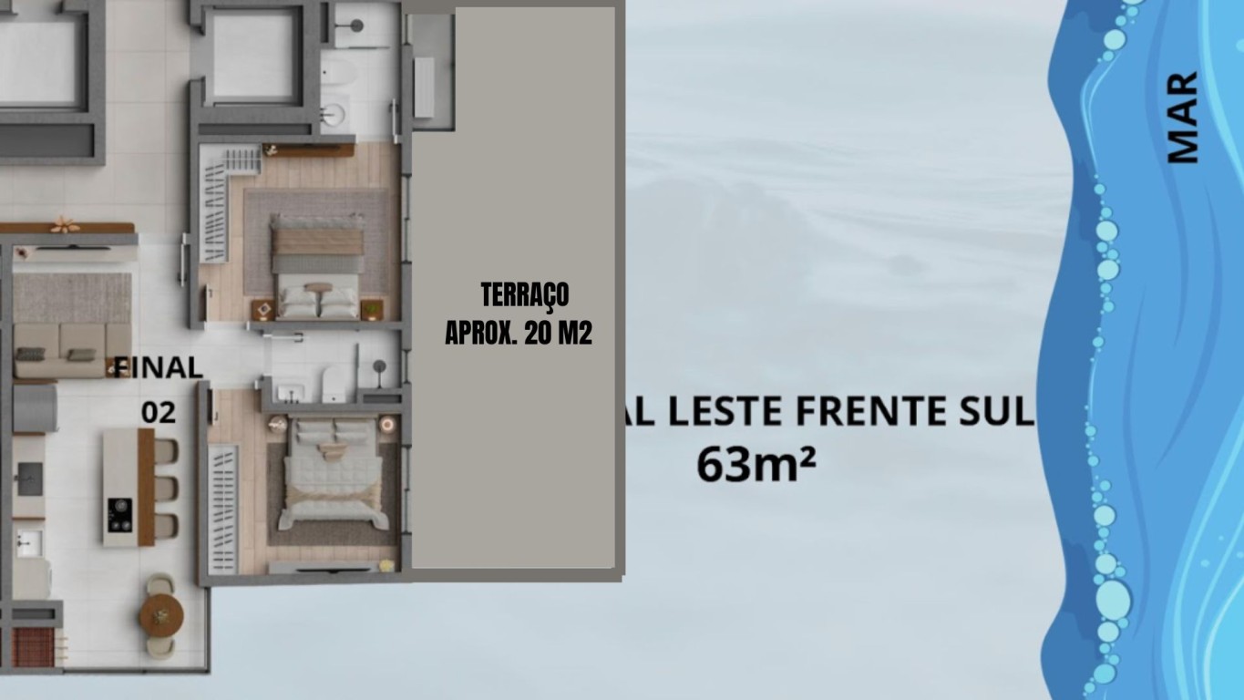 Apartamento com 2 quartos COM TERRAÇO a 220 metros do mar em Balneário Piçarras
