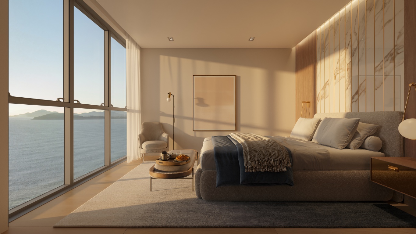 Ao escolher morar neste lindo apartamento no Gold Coast, será possível desfrutar de muito conforto e tranquilidade, em seus 132 m² de área privativa com vista para o mar. Além disso, você terá à disposição 03 suítes sendo 1 master, living integrado, sacada com churrasqueira, área de serviço e lavabo.
